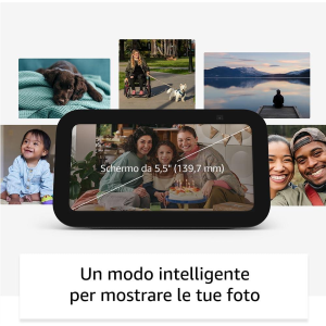 Il nuovo Echo Show 5 è dotato di uno schermo da 5,5"’, per controllare a colpo d’occhio il meteo e le ultime notizie, riprodurre in streaming musica, programmi e molto altro. Imposta sveglie e timer con la tua voce e personalizza la tua routine mattutina per svegliarti con l’accensione delle luci e la tua canzone preferita.
