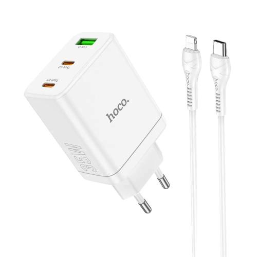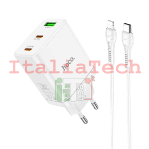 HOCO - CARICABATTERIE DA RETE PD QC3.0 3A 35W - 2*USB TYPE-C E 1 USB-A CON CAVO DI RICARICA TYPE-C A LIGHTNING - BIANCO