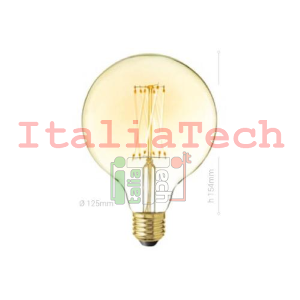 LAMPADINA LED, E27, GLOBO G125, VETRO AMBRATO, 4W, 220 LM, COLORE CALDO 2000K, FILAMENTO ONDA VERTICALE, CLASSE A+, DIMMERABILE