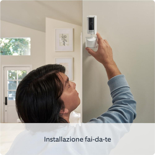 Da parete a parete. Dal pavimento al soffitto. Con Pan-Tilt Indoor Camera puoi controllare facilmente la visuale della tua videocamera di sicurezza dall'app Ring. Grazie alla rotazione fluida da sinistra a destra, che offre una visione a 360°, o all'inclinazione di 169° verso l'alto e verso il basso, trovare l'angolazione perfetta è un gioco da ragazzi. Basta collegarla e posizionarla per proteggere il tuo spazio con video HD in tempo reale.